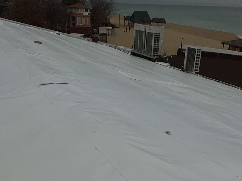 3 520 m2 Restoration: Roof waterproofing with mechanically fastened membranes.