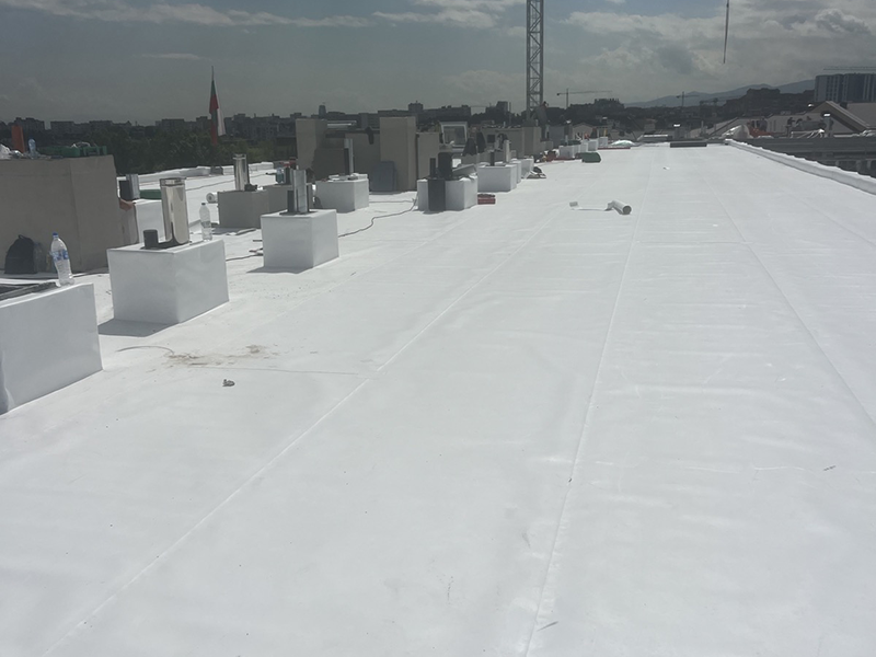 3 670 m2 New construction: Roof waterproofing with mechanically fastened membranes.
